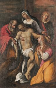Ottavio Pratelli, 1614, Compianto sul Cristo morto con la Madonna, san Giovanni d’Arimatea, san Giovanni apostolo e la Maddalena, olio su tela, cm 246×161[1].
