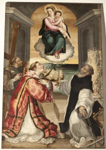 Anonimo, 1596, Madonna col Bambino e i santi Leonardo, Lorenzo e Antonio di Padova, olio su tela, cm. 216×136[1].