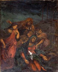 Nell’oratorio della Compagnia del Pianto, era un altare ligneo sul quale era posto il dipinto della Madonna Santissima dei Sette Dolori. Il dipinto, oggi in cattivo stato di conservazione e conservato nella chiesa di S. Pietro a Canepina, raffigurata la Madonna accasciata al suolo, trafitta dalle spalle e sorretta dalle pie donne tra le quali si distingue la Maddalena rappresentata a sinistra del quadro con il manto rosso. L’ambientazione notturna permette di scorgere sullo sfondo il Golgota con tre croci.