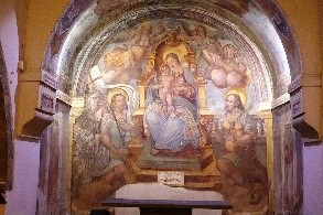 Nella chiesa dei santi Fidenzio e Terenzio di Bassano in Teverina, l’abside è interamente occupata da un affresco della Madonna in trono col Bambino e i santi Fidenzio e Terenzio.