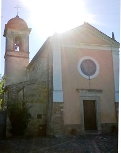 Chiesa parrocchiale di S. Maria Annunziata ricostruita nella seconda metà del XVI secolo dopo la distruzione della precedente chiesa ad opera delle truppe del duca di Borbone nel 1525[1], di modeste proporzioni, ha pianta rettangolare, a un’unica navata, coperta a volta, ha quattro altari (sull’altare maggiore è una pala rappresentante la Vergine Annunziata), conserva le reliquie di S. Ubaldo[2]. Nel 1605 essendo la chiesa poverissima, viene affidata alla Confraternita del Sacramento[3]. Nella chiesa sono presenti, dalla metà del XVII secolo e fino ancora nel XIX secolo, la Confraternita del Ss. Sacramento, la Confraternita del Rosario e la Confraternita dell’Annunziata. Nel corpo della chiesa è compreso un cimitero. Nel 1712 il vescovo dispone di erigere una croce sul frontespizio, imbiancare le pareti, pulire il cimitero. Nel 1931 si interviene con riparazioni a: tetto, decorazioni interne, facciata, porte agli ambienti attigui alla chiesa[4] e si restaura il campanile[5]. Nel 1949-50 si effettuano altri lavori di restauro.